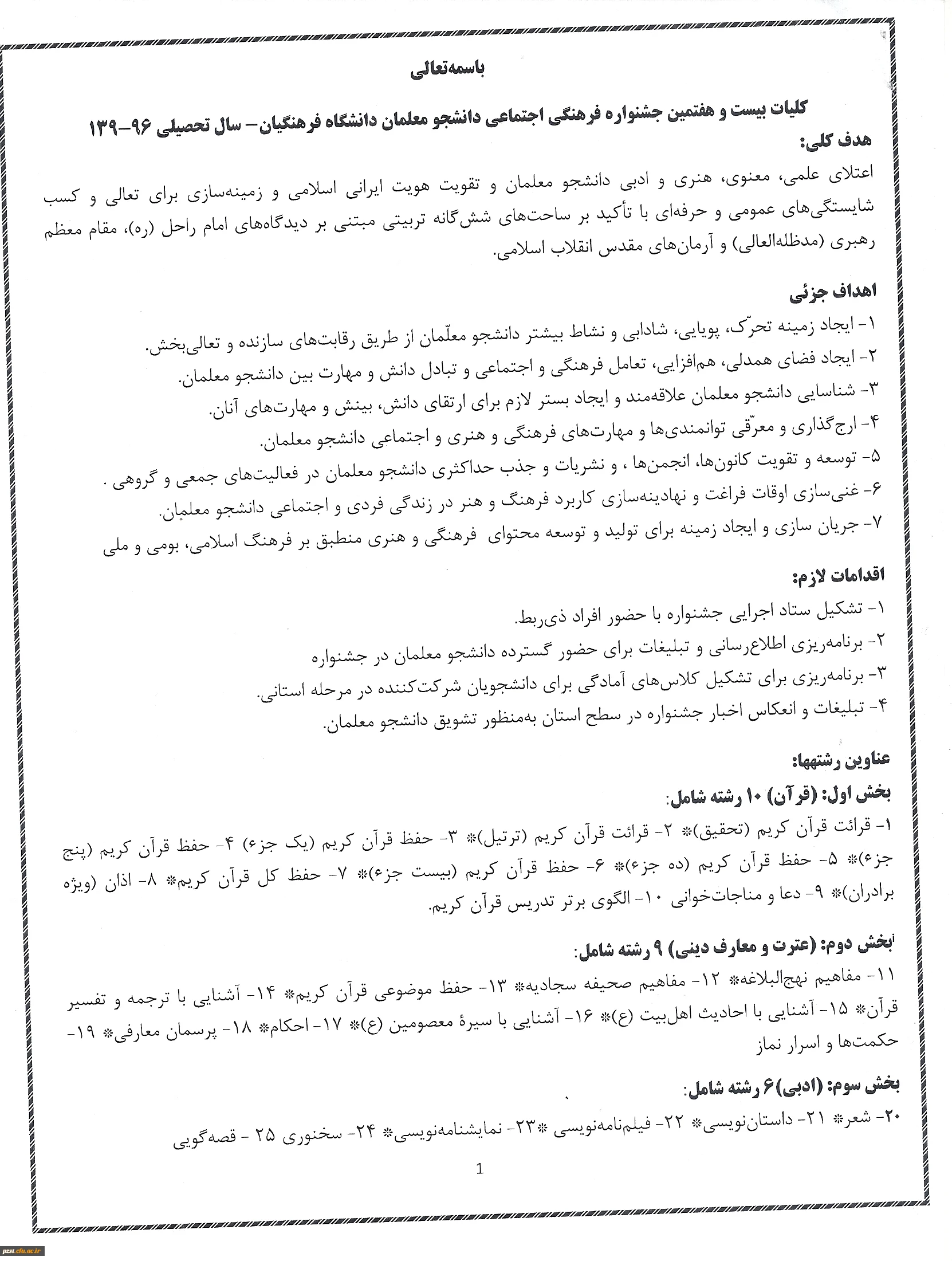 آخرین مهلت برای ثبت نام هفتمین جشنواره فرهنگی- اجتماعی دانشگاه فرهنگیان