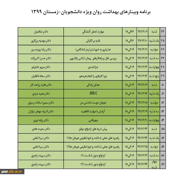 برنامه وبینارهای بهداشت روان مخصوص دانشجویان
