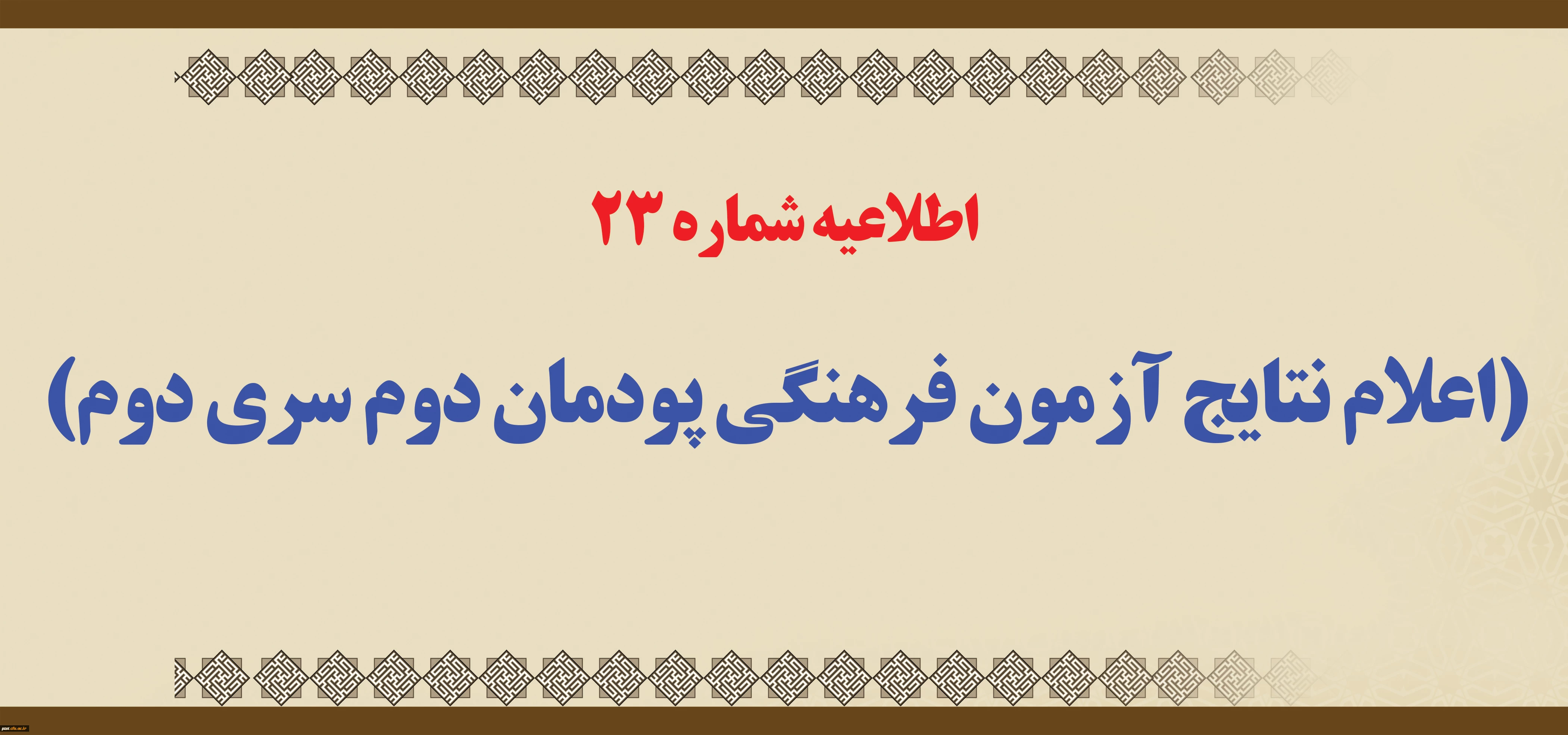امتیاز دهید : اطلاعیه شماره 23 (اعلام نتایج آزمون فرهنگی پودمان دوم سری دوم) یکشنبه 7 شهریور 1400 ساعت 10:42