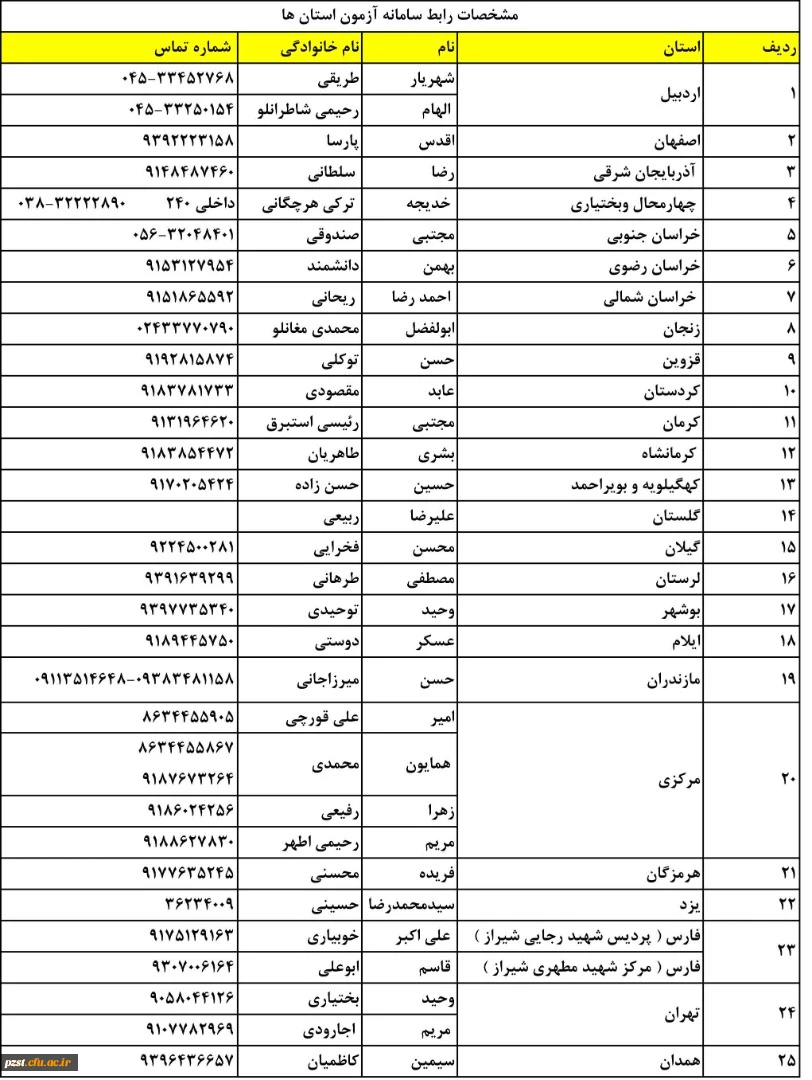 لیست پشتیبانان روز جمعه به تفکیک استان ها