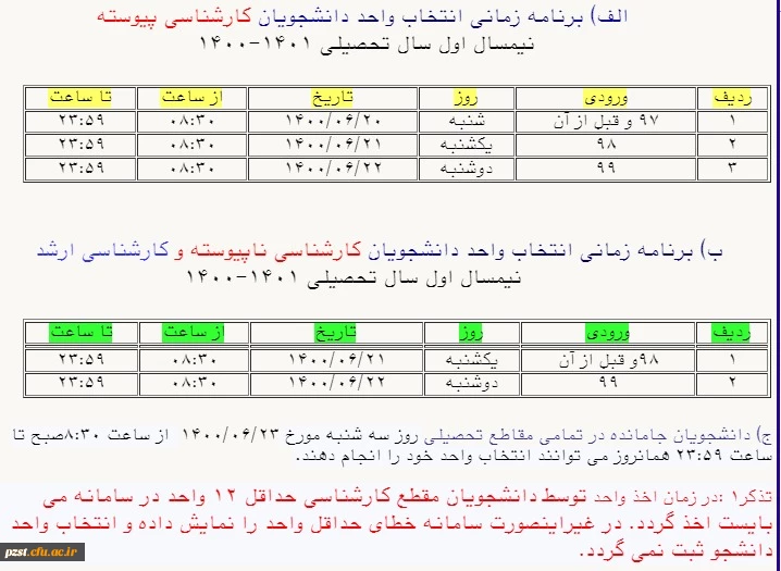 امتیاز دهید : برنامه زمان بندی انتخاب واحد دانشجویان نیمسال اول 1401-1400 پنجشنبه 18 شهریور 1400 ساعت 16:12