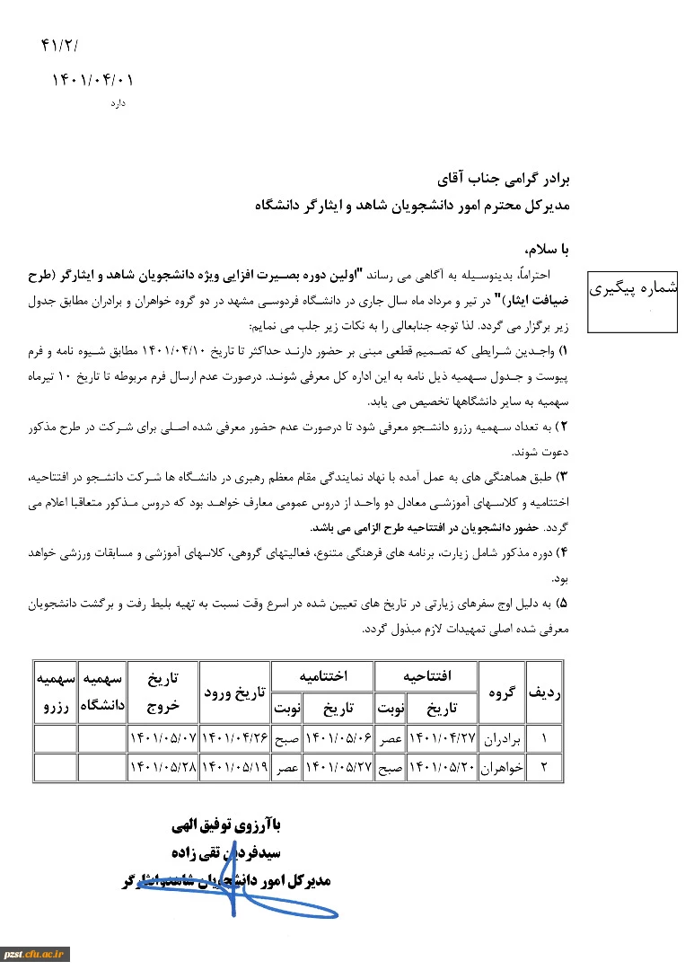 طرح ضیافت ایثار ویژه دانشجومعلمان شاهد و ایثارگر