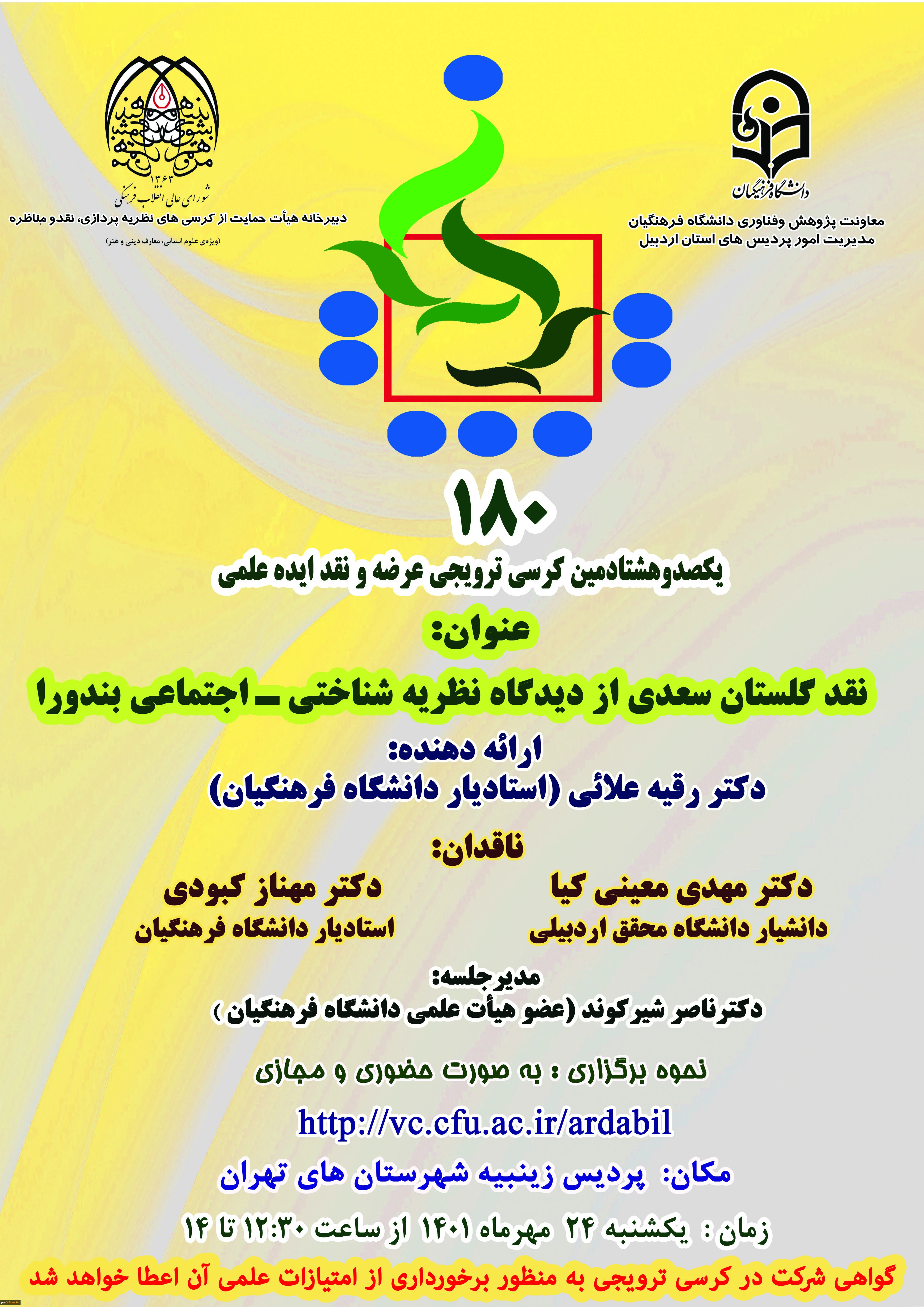 دانشگاه فرهنگیان استان اردبیل برگزار می کند: یکصد و هشتادمین کرسی ترویجی دانشگاه فرهنگیان