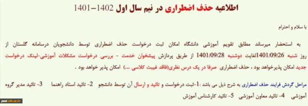 اطلاعیه حذف اضطراری در نیم سال اول 1402-1401