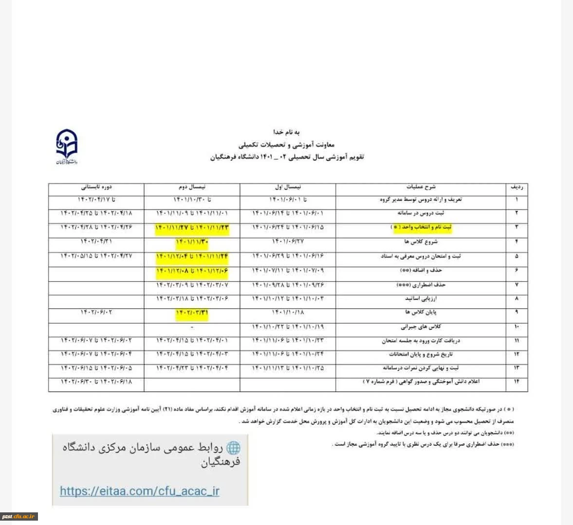 تقویم آموزشی نیمسال دوم سال تحصیلی 1401-1402 2