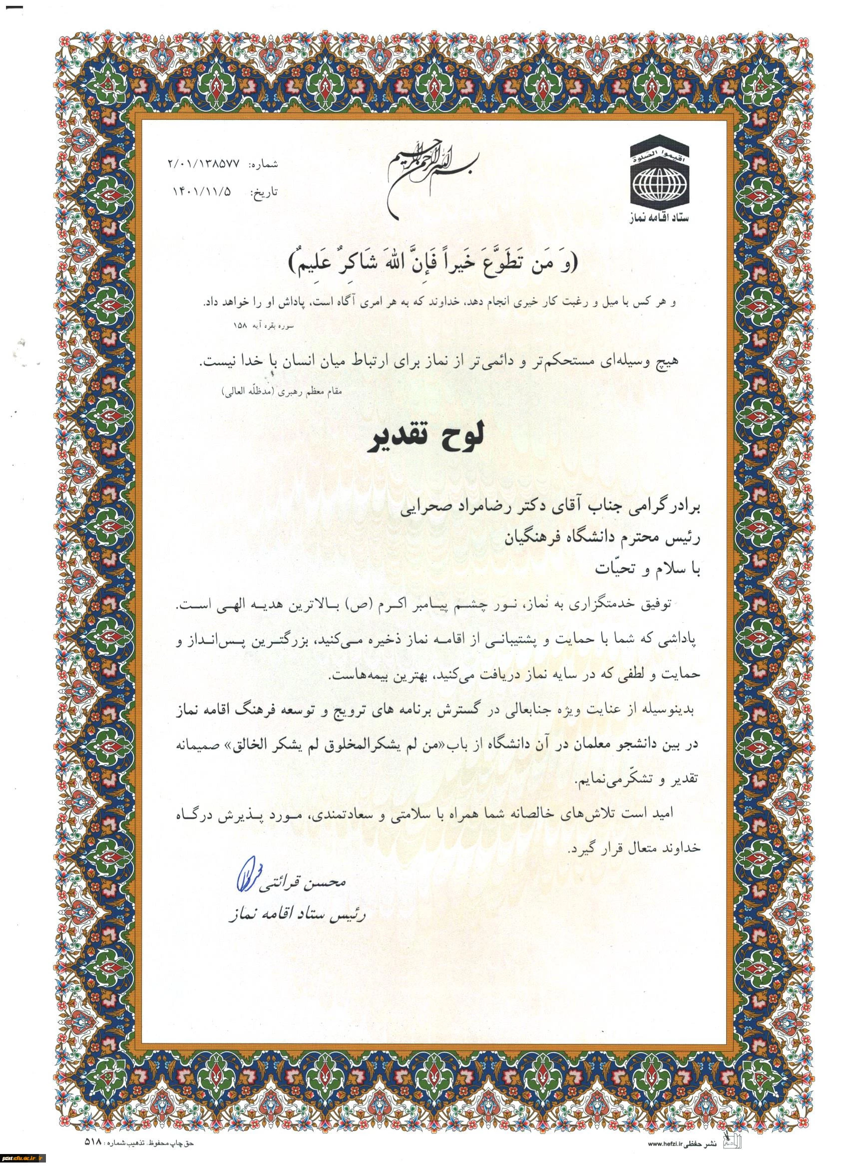 امتیاز دهید : تقدیر از دانشگاه فرهنگیان در بیست و نهمین اجلاس سراسری نماز 2 سهشنبه 11 بهمن 1401 ساعت 8:59