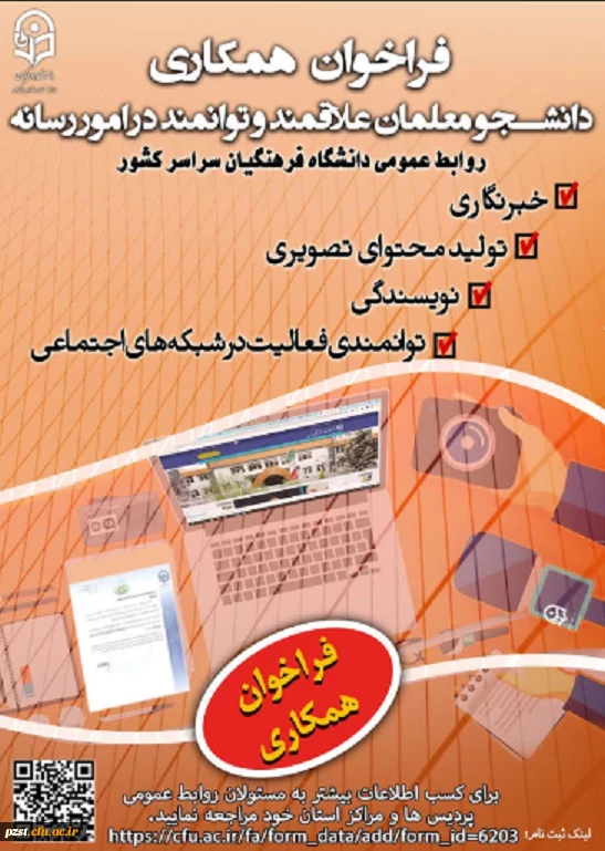 فراخوان همکاری دانشجو معلمان علاقه مند و توانمند در امور رسانه با روابط عمومی سازمان مرکزی دانشگاه فرهنگیان 4