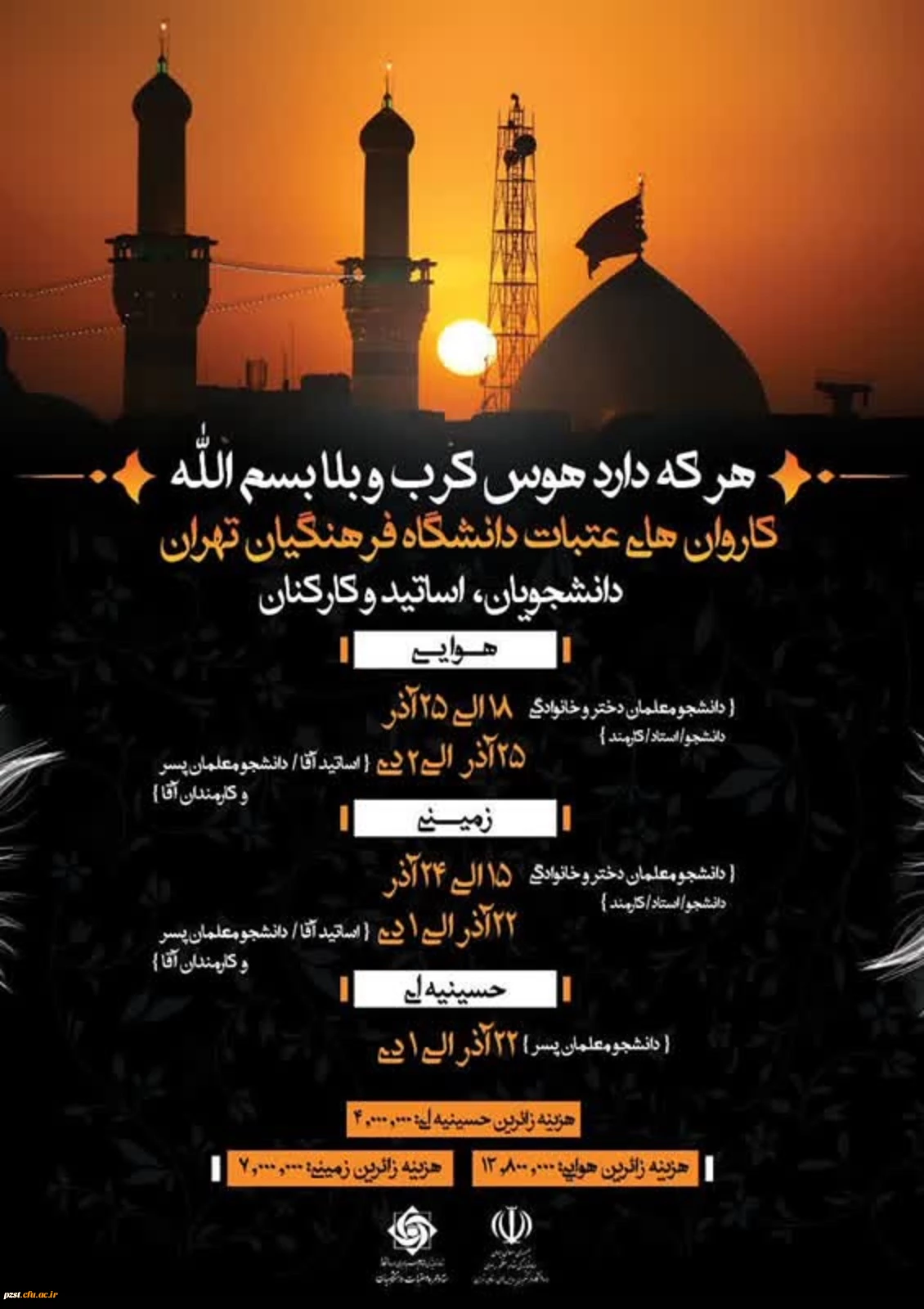 ثبت نام کاروان های عتبات دانشگاه فرهنگیان تهران 2