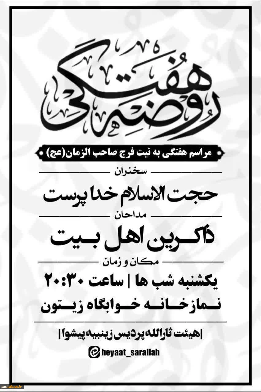 امتیاز دهید : مراسم هفتگی هیئت دانشجویی ثارالله به مناسبت شهادت حضرت ام البنین (س) 2 چهارشنبه 6 دی 1402 ساعت 18:56