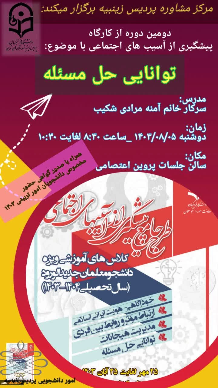 امتیاز دهید : کارگاه های پیشگیری از آسیب های اجتماعی با موضوع توانایی حل مسئله دوشنبه 28 آبان 1403 ساعت 11:26